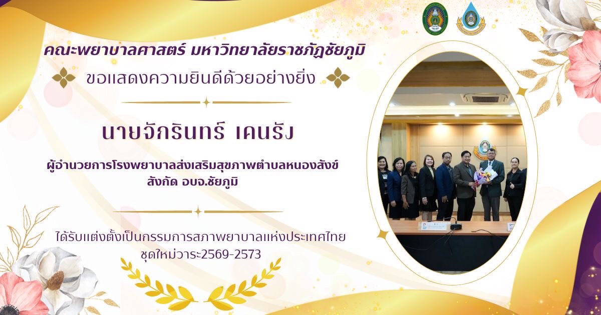คณะพยาบาลศาสตร์ มหาวิทยาลัยราชภัฏชัยภูมิ167 หมู่ 2 ตำบลนาฝายอำเภอเมือง จังหวัดชัยภูมิ 36000044-815111 ต่อ 5100 ,5102nu@cpru.ac.th